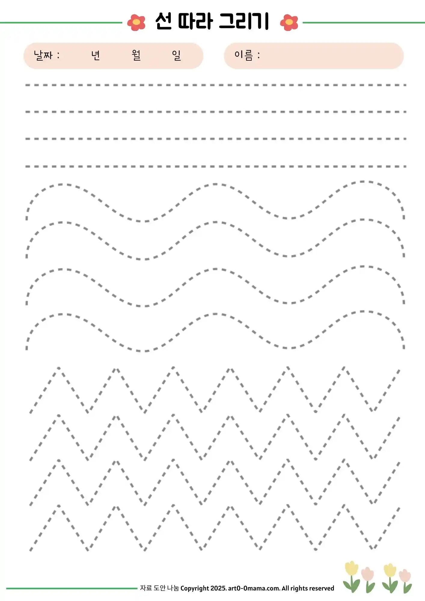 마무리하며, 선 따라 그리기 활동은 단순한 놀이 같지만 아이의 성장 발달에 꼭 필요한 소근육 훈련과 집중력 향상에 큰 도움을 줍니다. 무료 자료이니 부담 없이 출력해 활용해 보세요. 꾸준히 해나가다 보면 아이의 손 근육 발달뿐 아니라 성취감과 자신감도 함께 자라나는 모습을 확인하실 수 있을거에요.